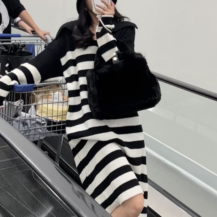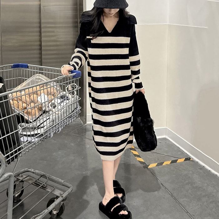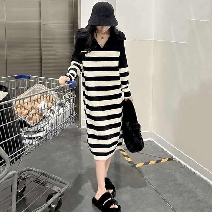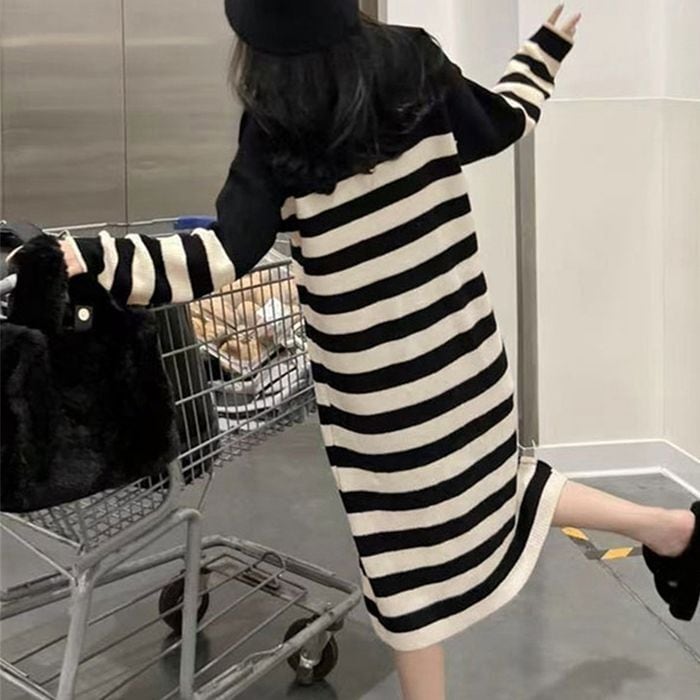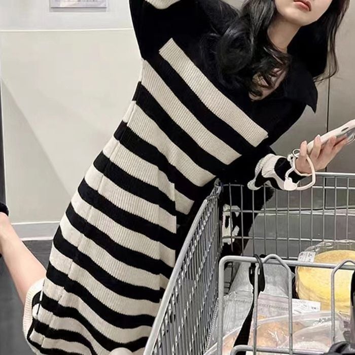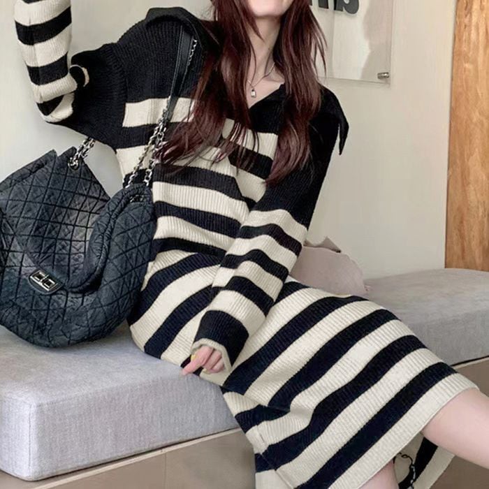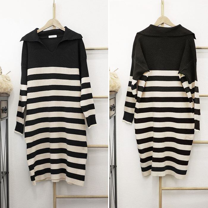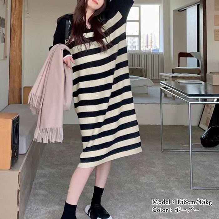 【即納】ボーダー ニットワンピース 227338
