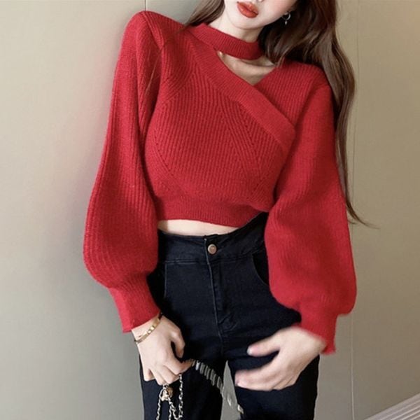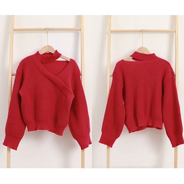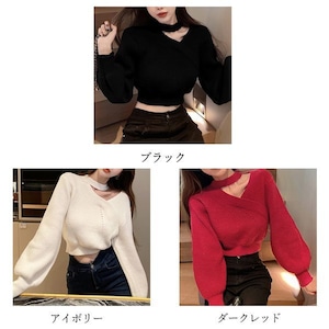 【即納】アシンメトリー チョーカーネック ニット 224006