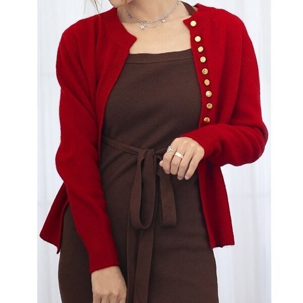 【即納】リブ ニット カーディガン 227752