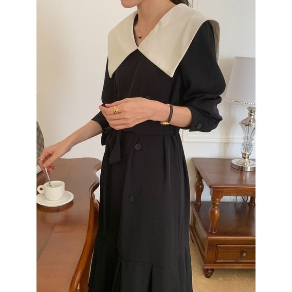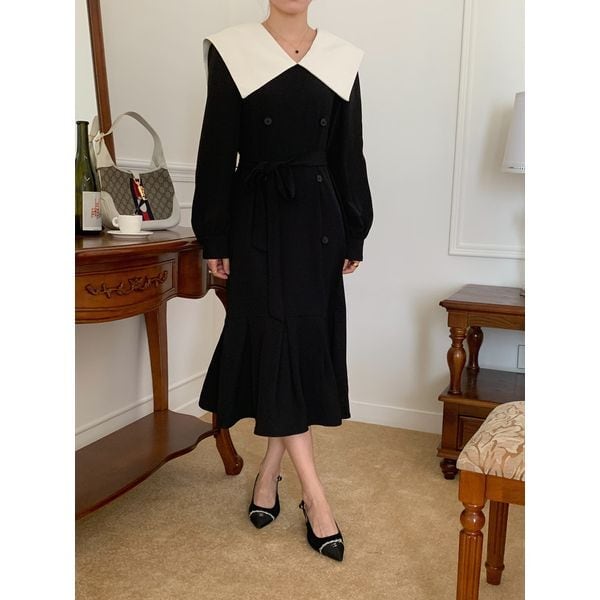 ビッグカラー ダブルブレストデザイン ワンピース 227803