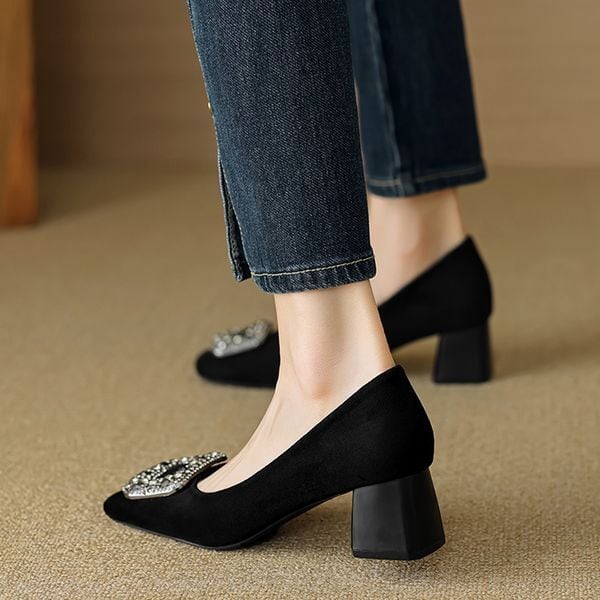 スクエア ビジューバックル パンプス 228350