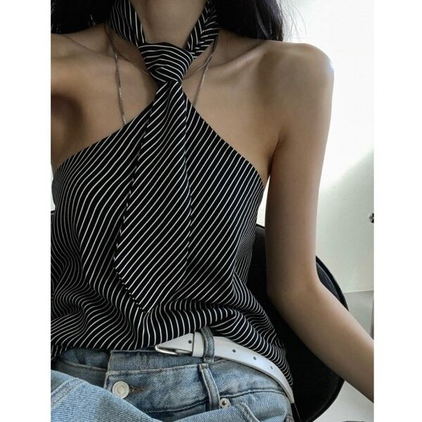 ストライプ ネクタイホルターネック 228845