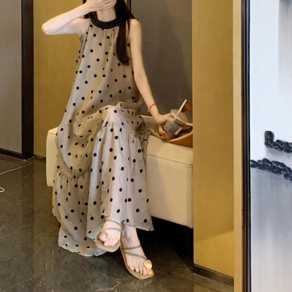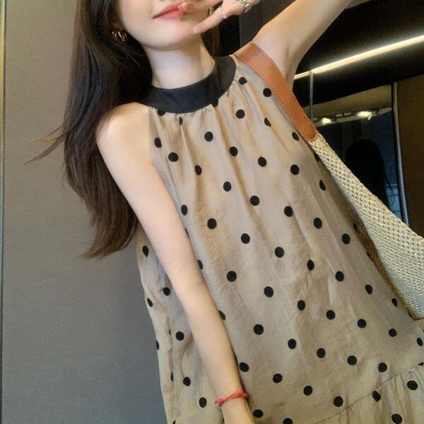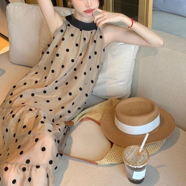 ホルターネック ドット バックリボン ワンピース 229022