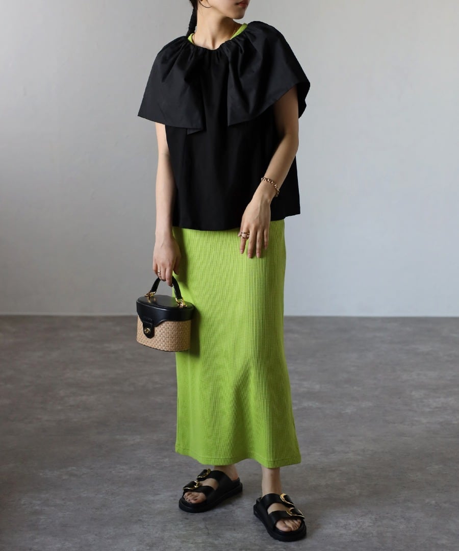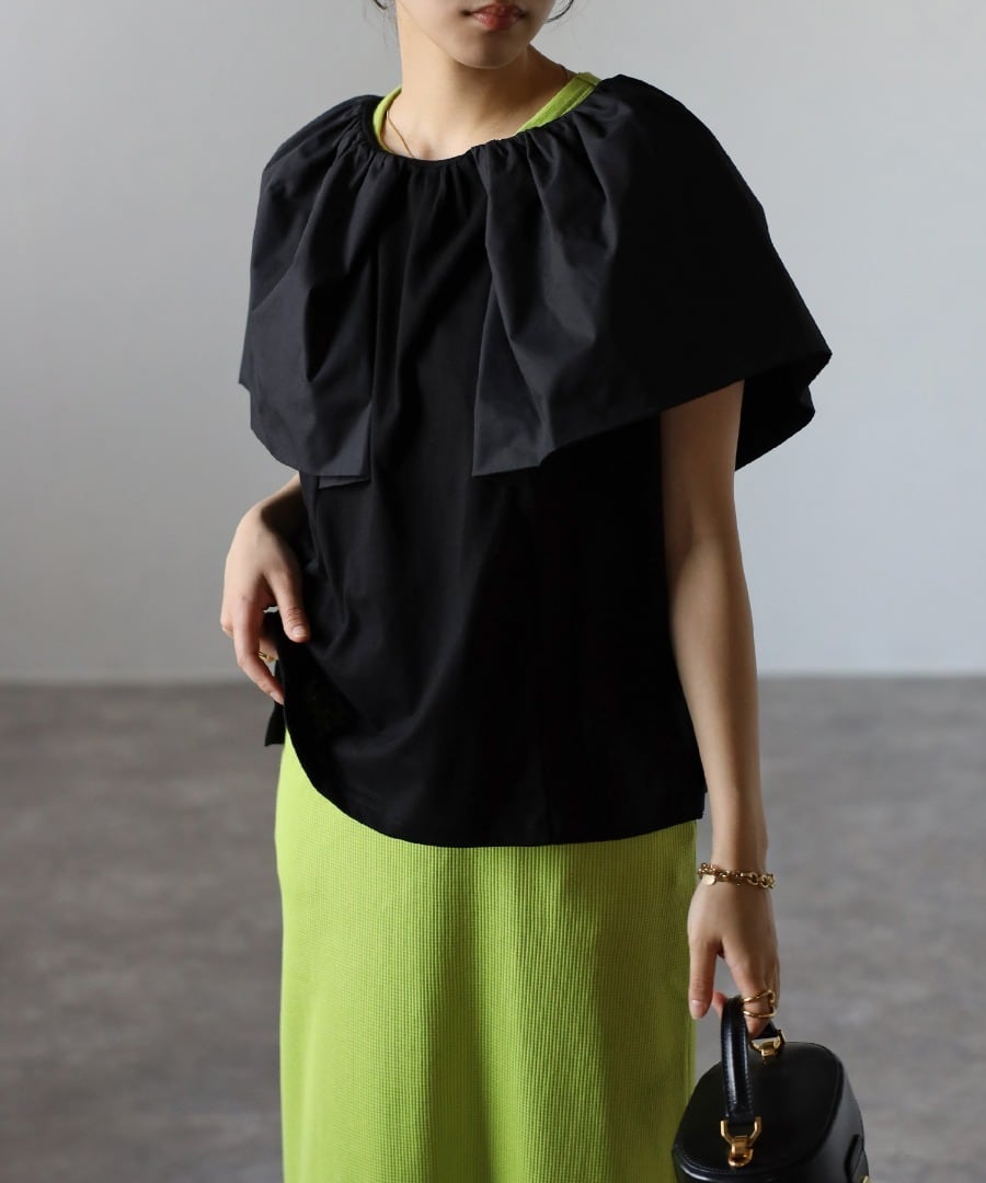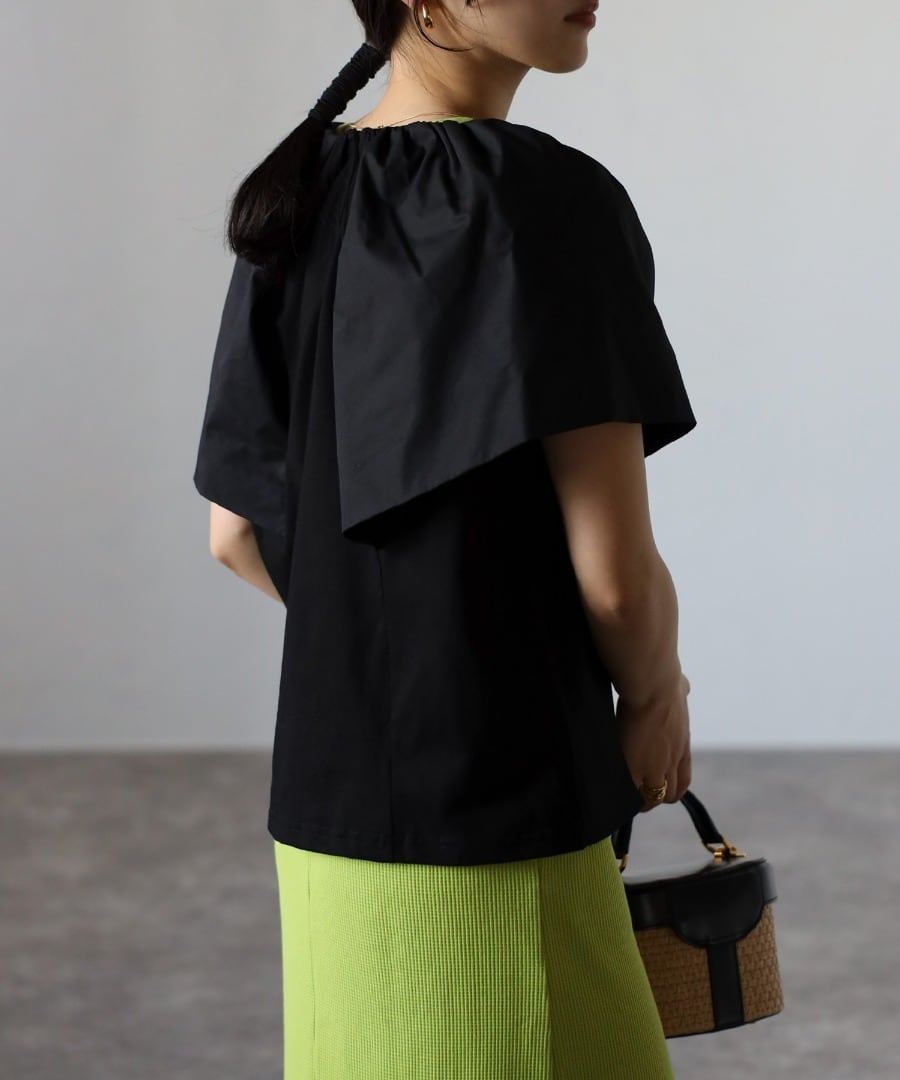 女性らしいケープデザインが魅力のプルオーバー。身頃はジャージー素材で、暑い季節でもさらっと着られる素材感です。旬なケープ風ビッグカラーがアクセントで、肩から腕周りまでカバーしてくれる優秀ディテール。スラックスやデニムパンツと合わせてカジュアルに、スカートと合わせてフェミニンに、幅広くスタイリングが可能。インでもアウトでも着まわせる丈感で、コーデの主役になる優秀トップスです。