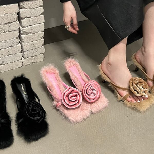 ファー ローズ スクエア サンダル 229147