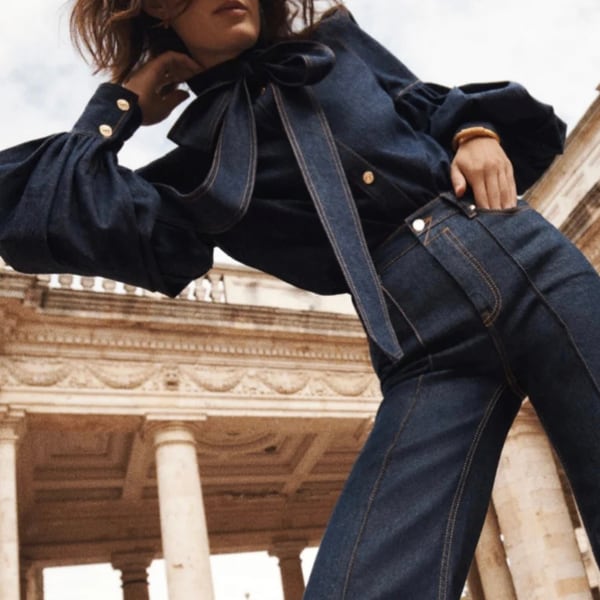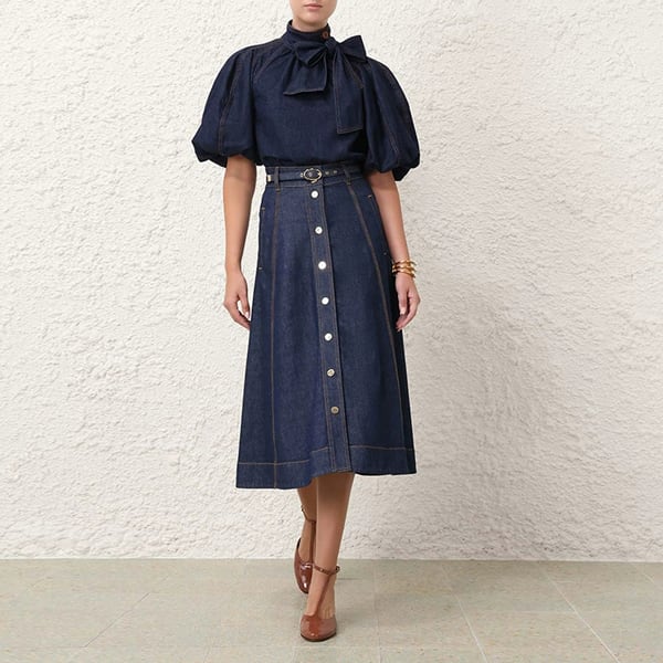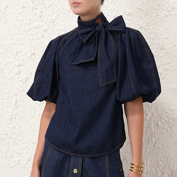 ボウタイ ドロップスリーブ デニム ブラウス 230086