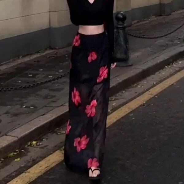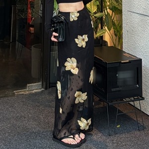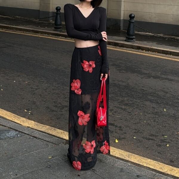 フラワー バックスリット ミディ丈スカート 230312