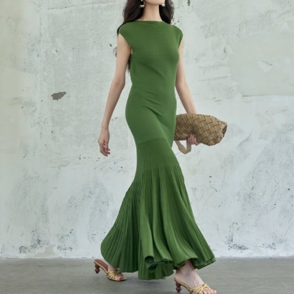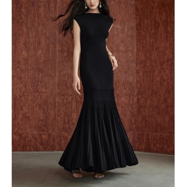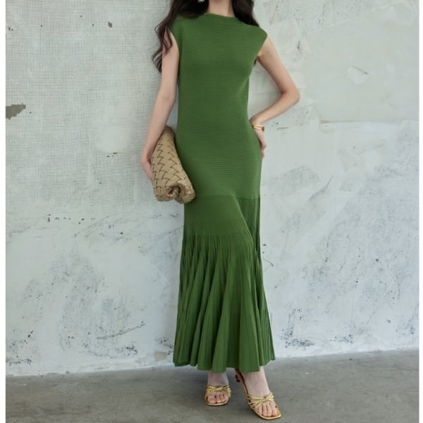 フレンチスリーブ フィッシュテール ニットワンピース 230104