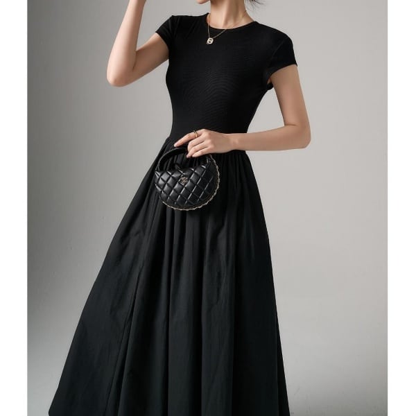 フレンチスリーブ ニットドッキング ワンピース 230375