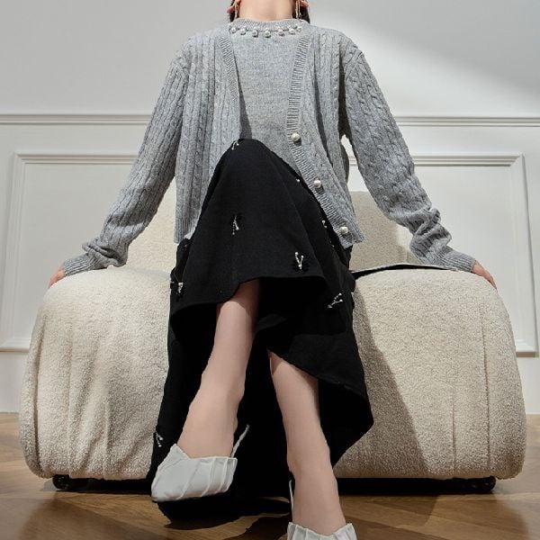 パールボタン カーディガン & ノースリーブニット アンサンブル 230338