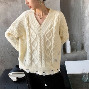 Vネック ケーブル ダメージ ニット 229989