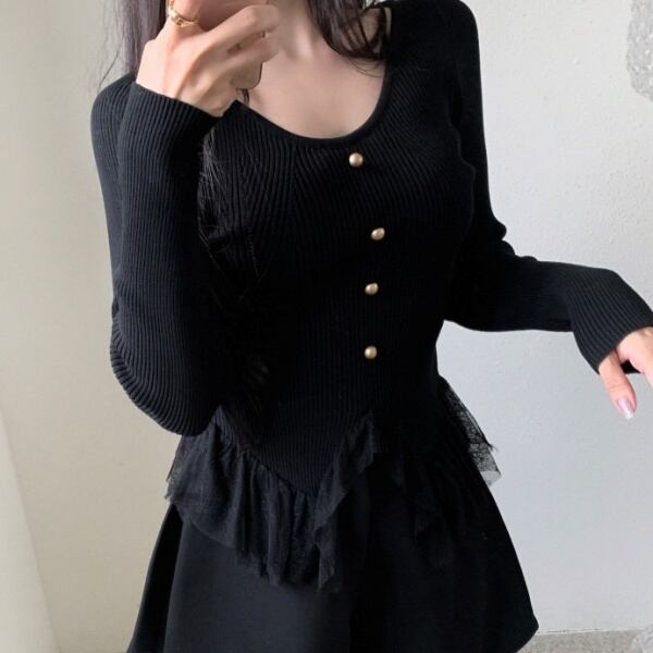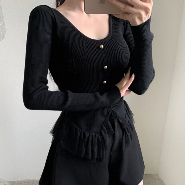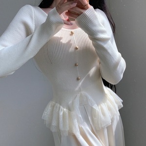 Vネック チュールヘム ニット 230517