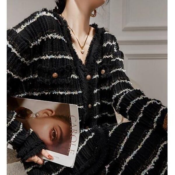 ボーダー Vネック カーディガン 230587