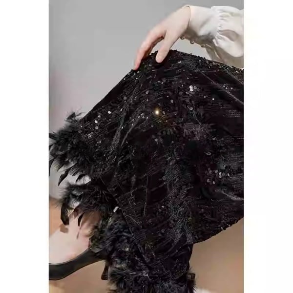 スパンコール フェザー サイドスリット スカート 231065