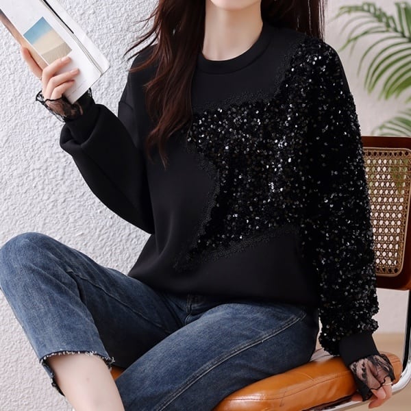 スパンコール チュールカフス カットソー 231084