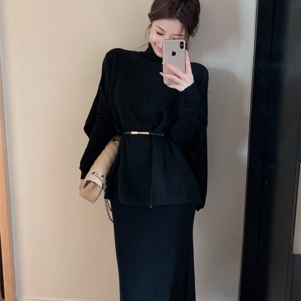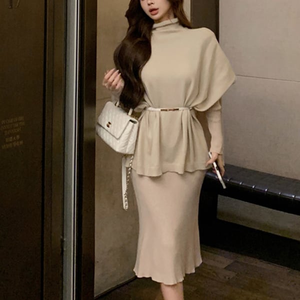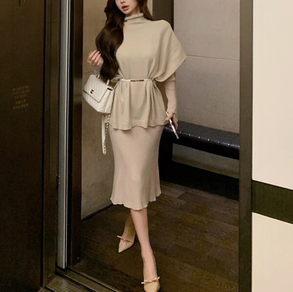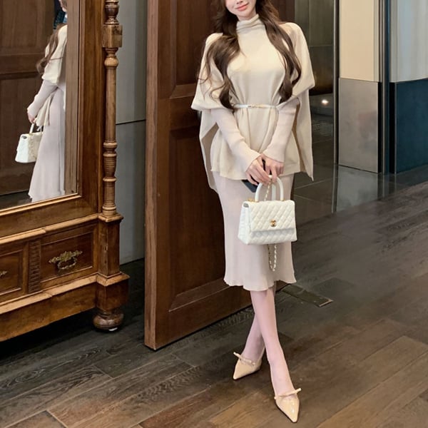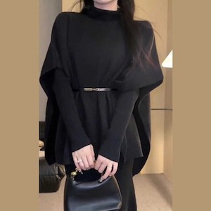 2piece モックネック ケープ ニット&ニット ワンピース 231104