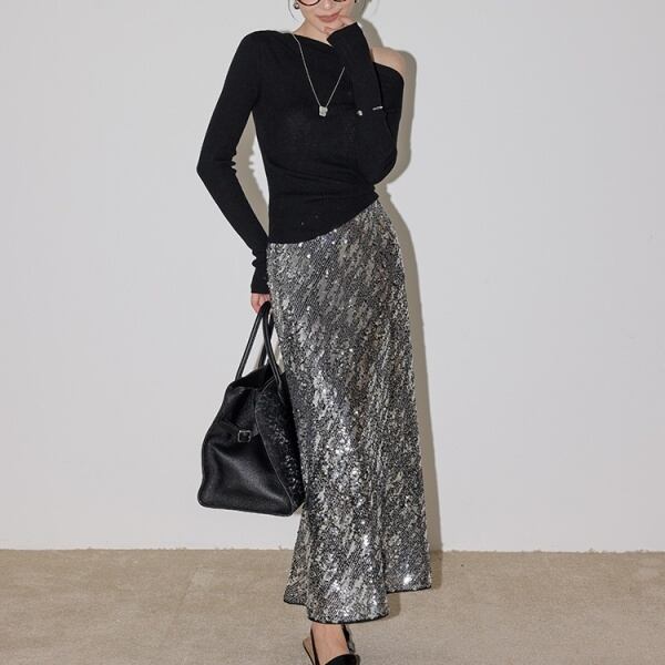 スパンコール マキシ スカート 231670