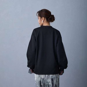トレンドのボンディング生地ので腕からのぞくレーズがアクセトに。ツルっとした肌触りで、キレイめスタイルにも着こなせるゆったりサイズのプルオーバー。X〜XL位の大きめなサイズ感になるので、ルーズ感のある着こなしに最適です。