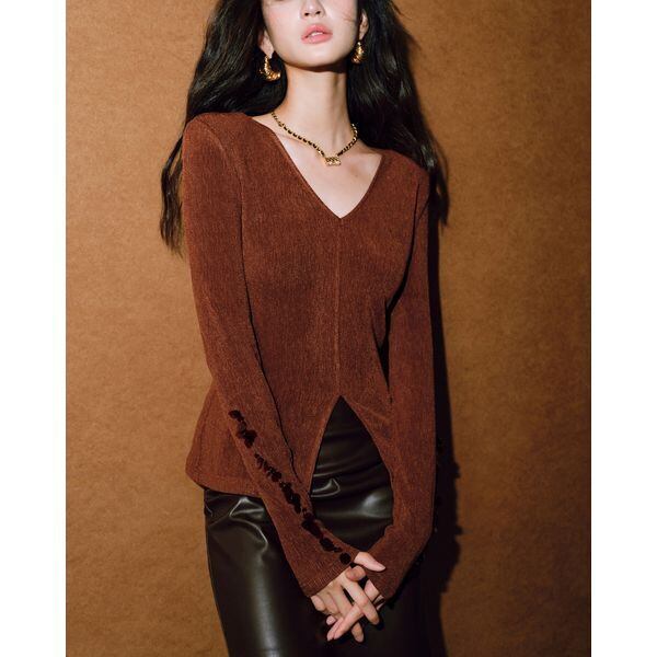スリーブスパンコール スリットカットソー 231426