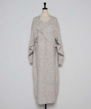 【即納】2way セーター付 ディープVネック ニットワンピース 231449
