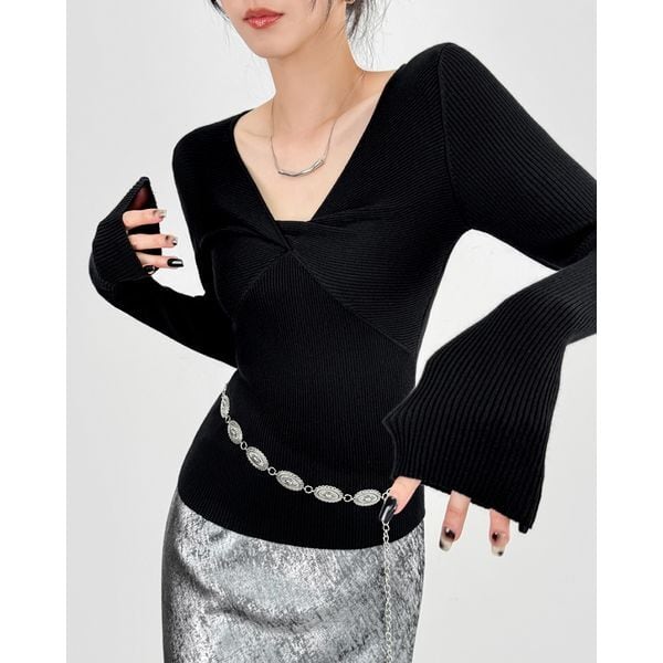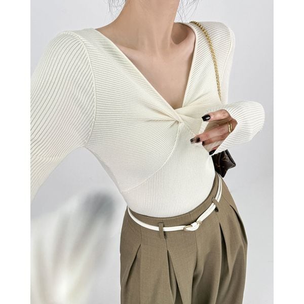 ツイストVネック リブニットプルオーバー 231172