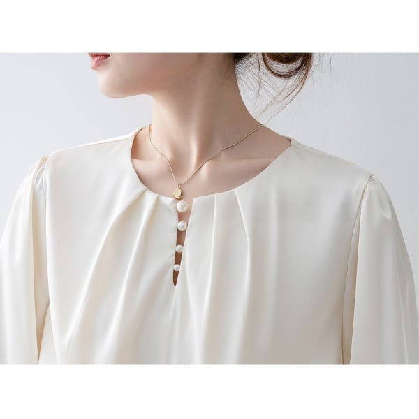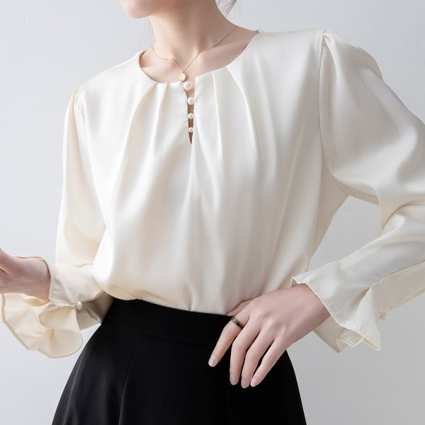 ラウンドネック ベルスリーブ シフォン ブラウス 232415