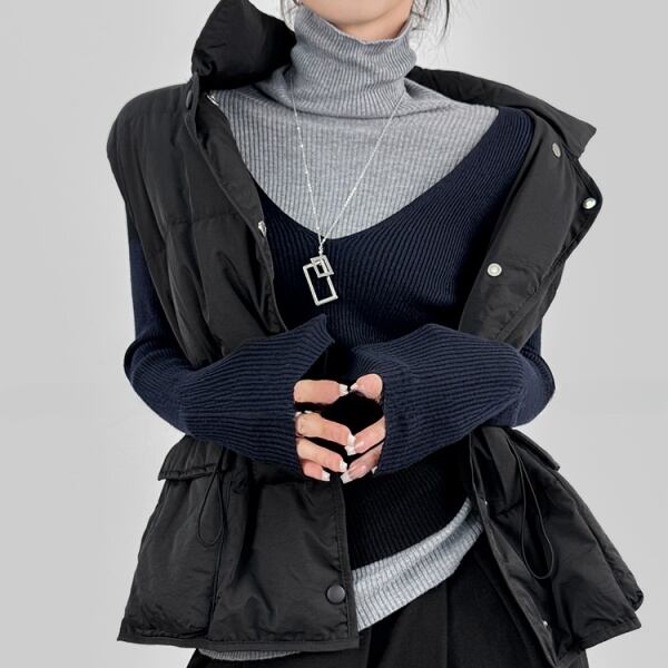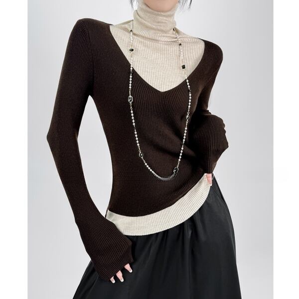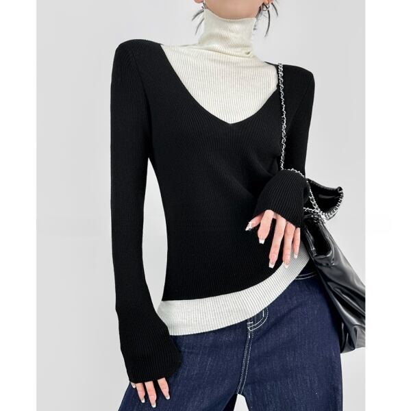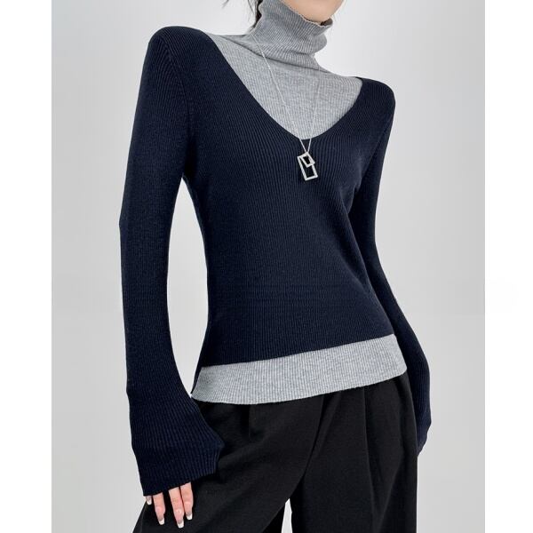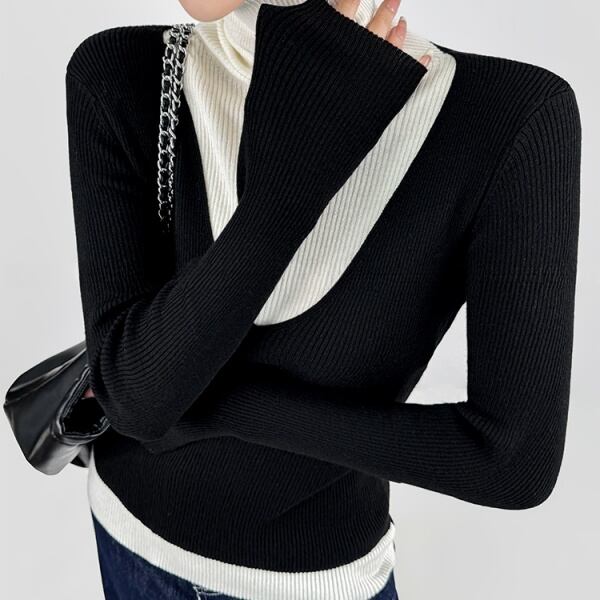 バイカラー ベルスリーブ ハイネック ニット 232159