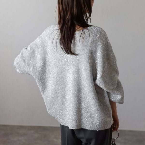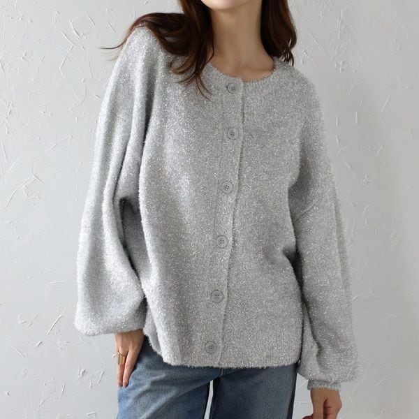 【即納】2WAY ラメシャギー クルーネックカーディガン 232584