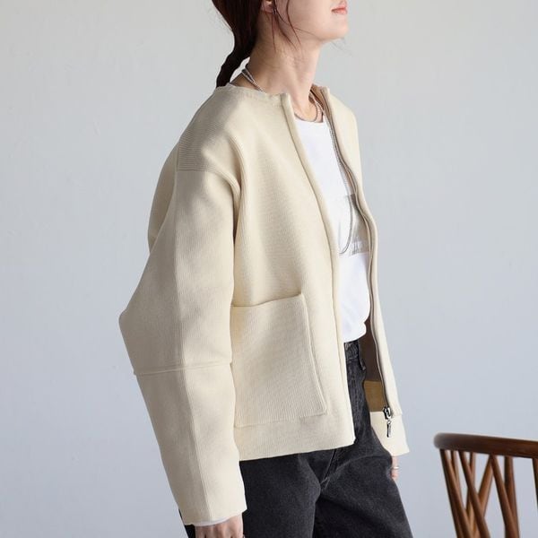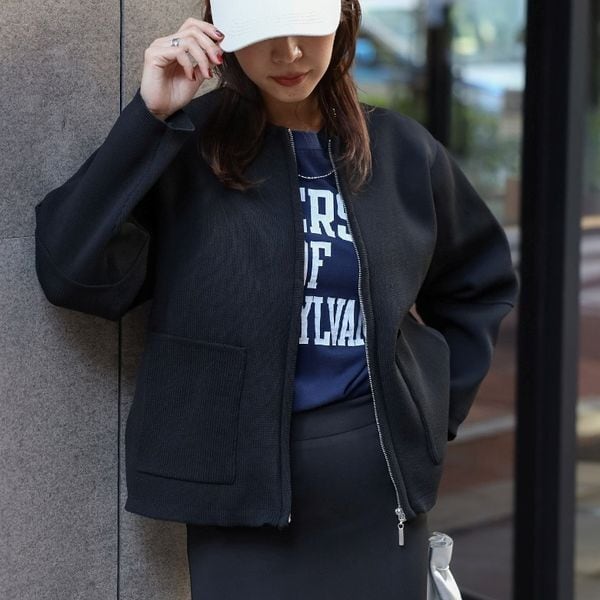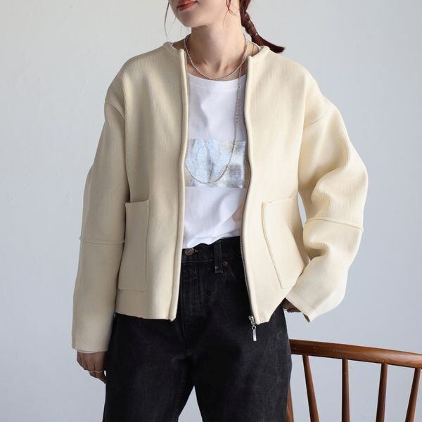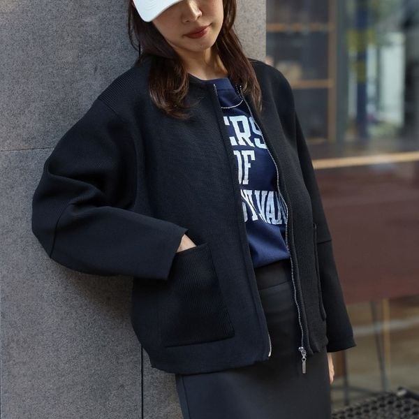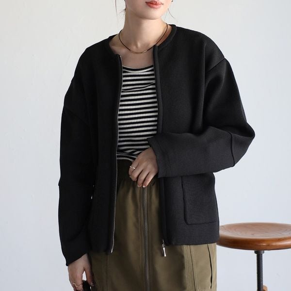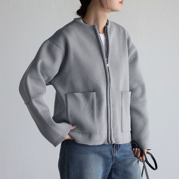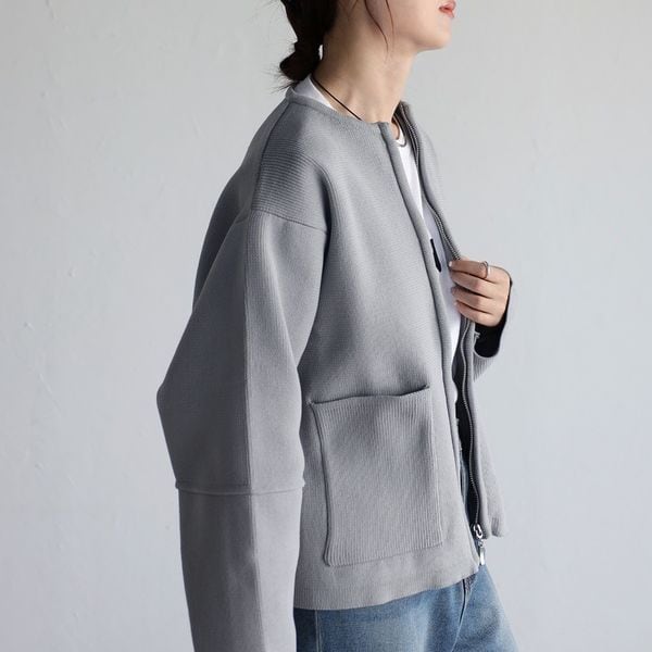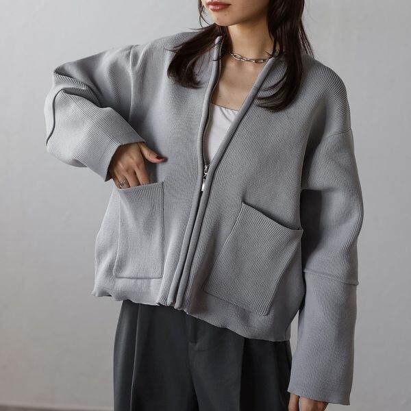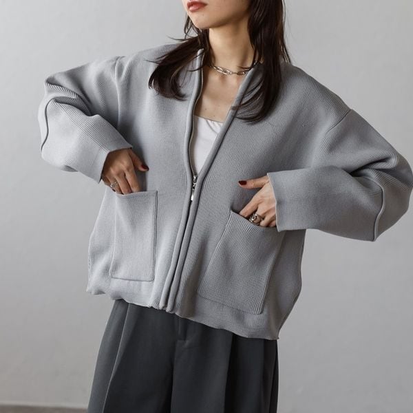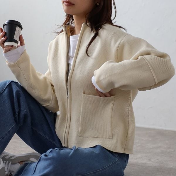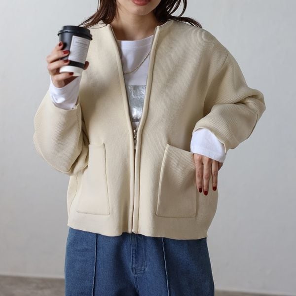 【即納】フロントジップ ダンボールニット カーディガン 232608