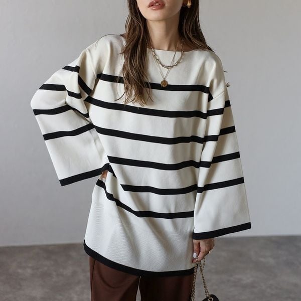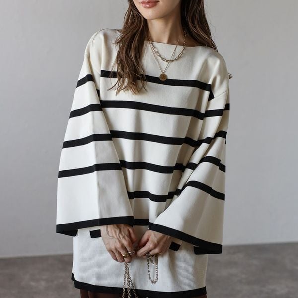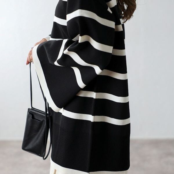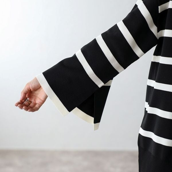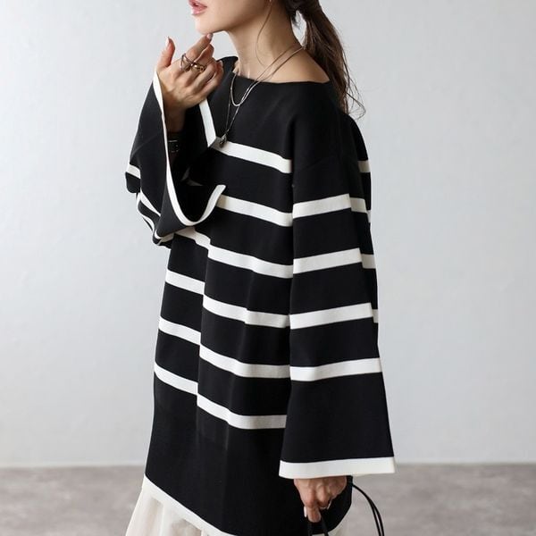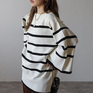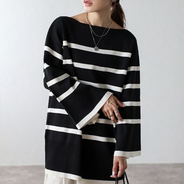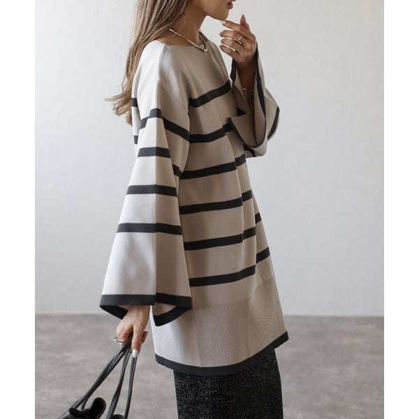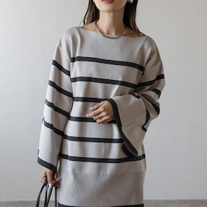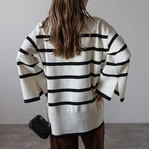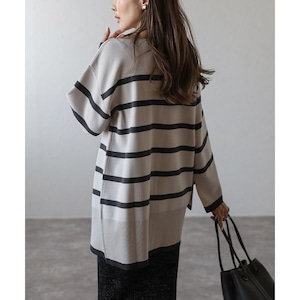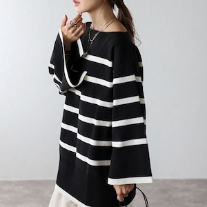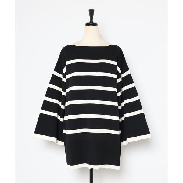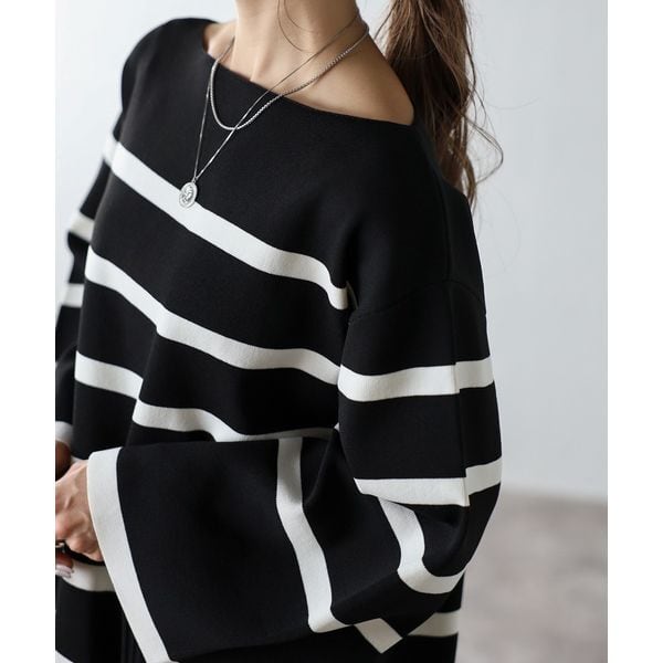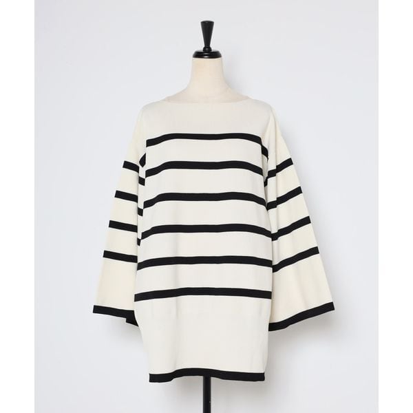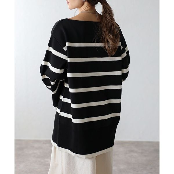 【即納】スリット ボートネック ボーダーニット 232615
